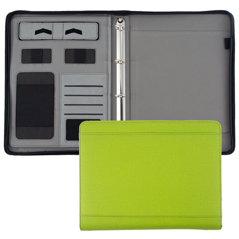 A4 Personalizzato Tela di Oliva Verde Zip Documento Cartella Padfolio Portafoglio Per La Promozione