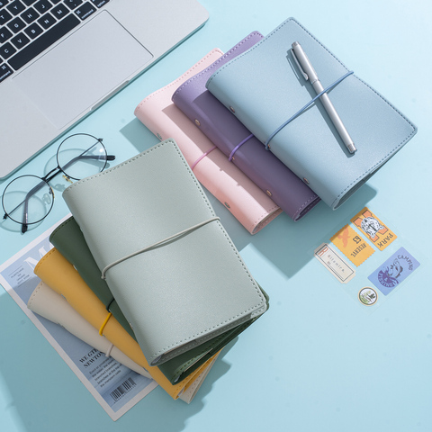 غطاء جلد ناعم مخصص Macaron A6 Binder مع ، 6 حلقات دفتر أوراق فضفاض ، مذكرات قابلة لإعادة الملء مع شعار