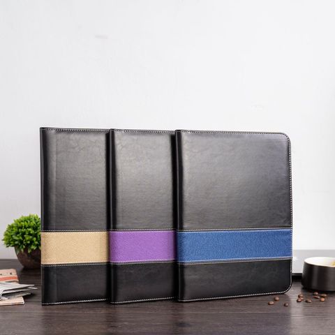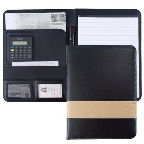 電卓とメモ帳付きのカスタムA4サイズのパドフォリオバルク、PUレザーポートフォリオコーポレートギフト、ストライプ付きブラックパドフォイロ