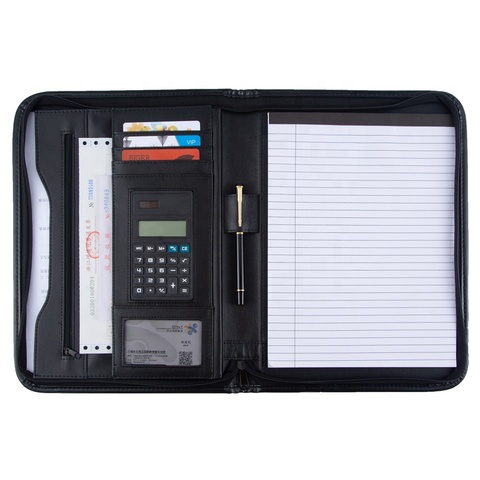 カスタムプロモーションギフトブリーフケースレザーA4ドキュメントフォルダービジネスステーショナリーポートフォリオパドフォリオ電卓付き