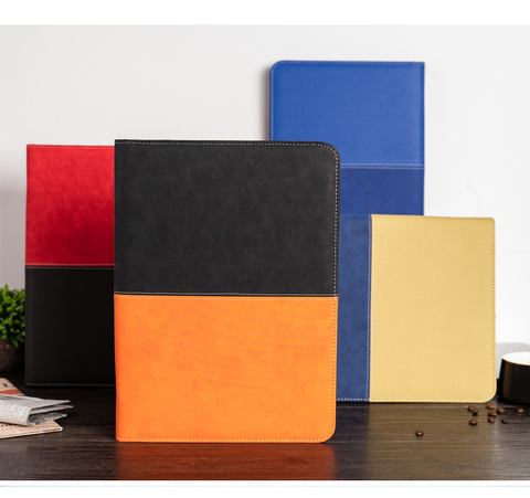 フェイクレザーA4レザーポートフォリオフォルダー、メモ付きブリーフケースフォルダージッパーパドフォリオ、リサイクルレザーポートフォリオケース
