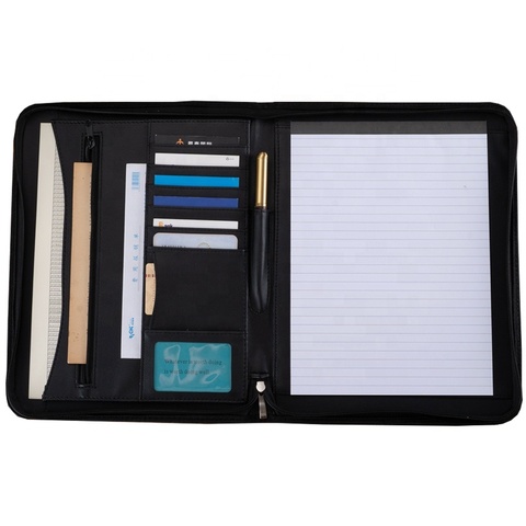 Couro personalizado Zip Binder Designer Carteira Padfolio Com Alça Para O Fornecimento De Escola De Escritório