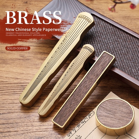 중국 Guzheng 스타일 럭셔리 황동 문진 라운드 스트립 구리 클래드 나무 문진 금속 서예